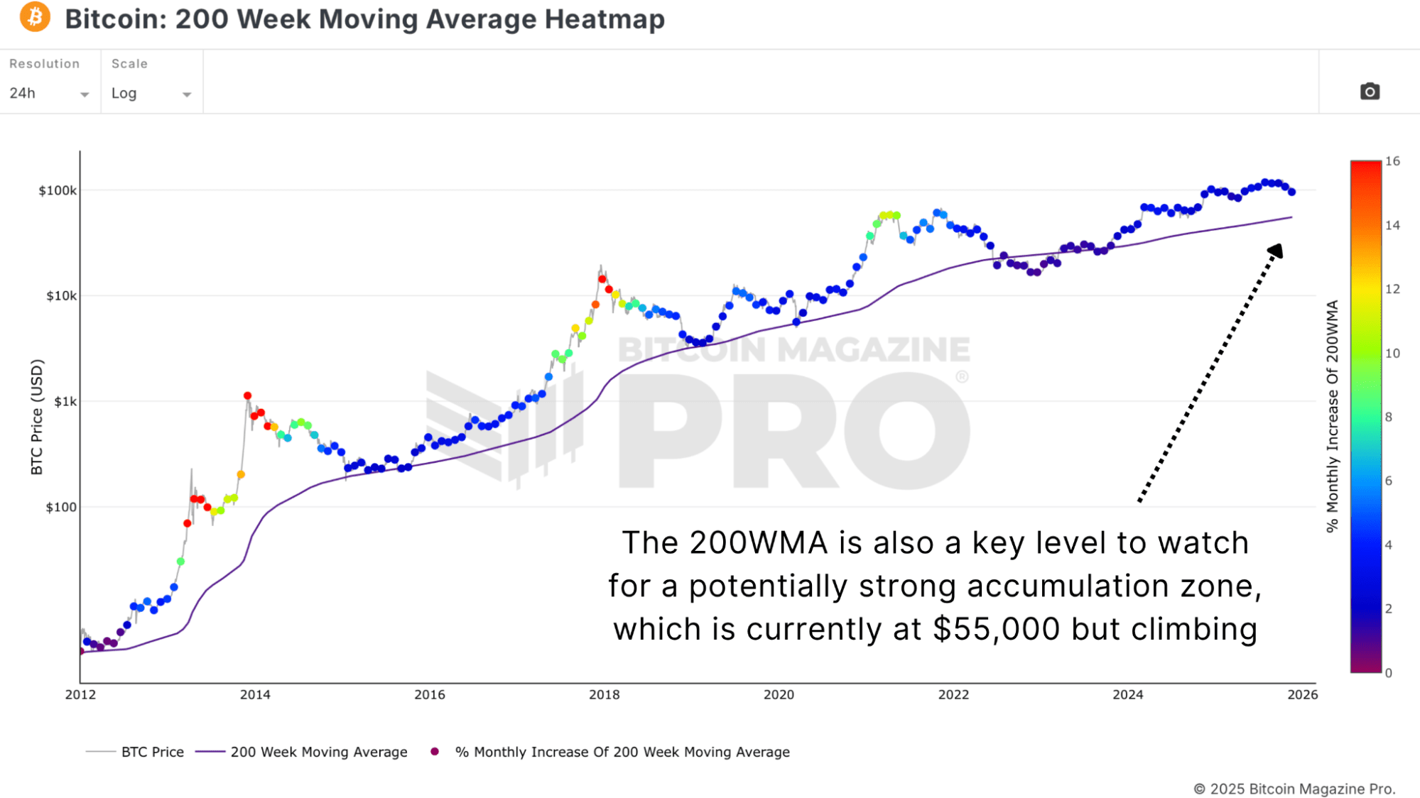 A similar narrative emerges from the 200-Week Moving Average, as this also currently sits in the mid-$50,000. Historically, points where this metric meets price have presented strong long-term accumulation opportunities.