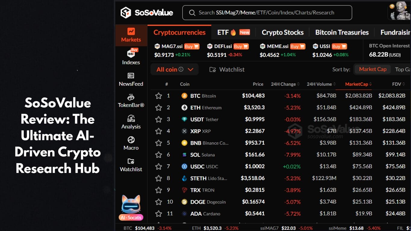 In a market where narratives shift daily and data drives every decision, SoSoValue is carving a name for itself as a must-have platform for serious crypto researchers. Instead of offering a place to trade, it focuses on empowering investors with the tools to understand the “why” behind price movements. This AI-powered platform blends on-chain analytics, macro-economic insights, and real-time market data into a single research interface. Whether you’re analysing Bitcoin dominance, tracking DeFi liquidity, or studying yield trends, SoSoValue aims to help you separate hype from hard data. This review explores its most impactful features — from project analysis to macro indicators and the innovative SoDEX — to show how SoSoValue is helping traders and analysts make more intelligent, informed decisions in 2025.